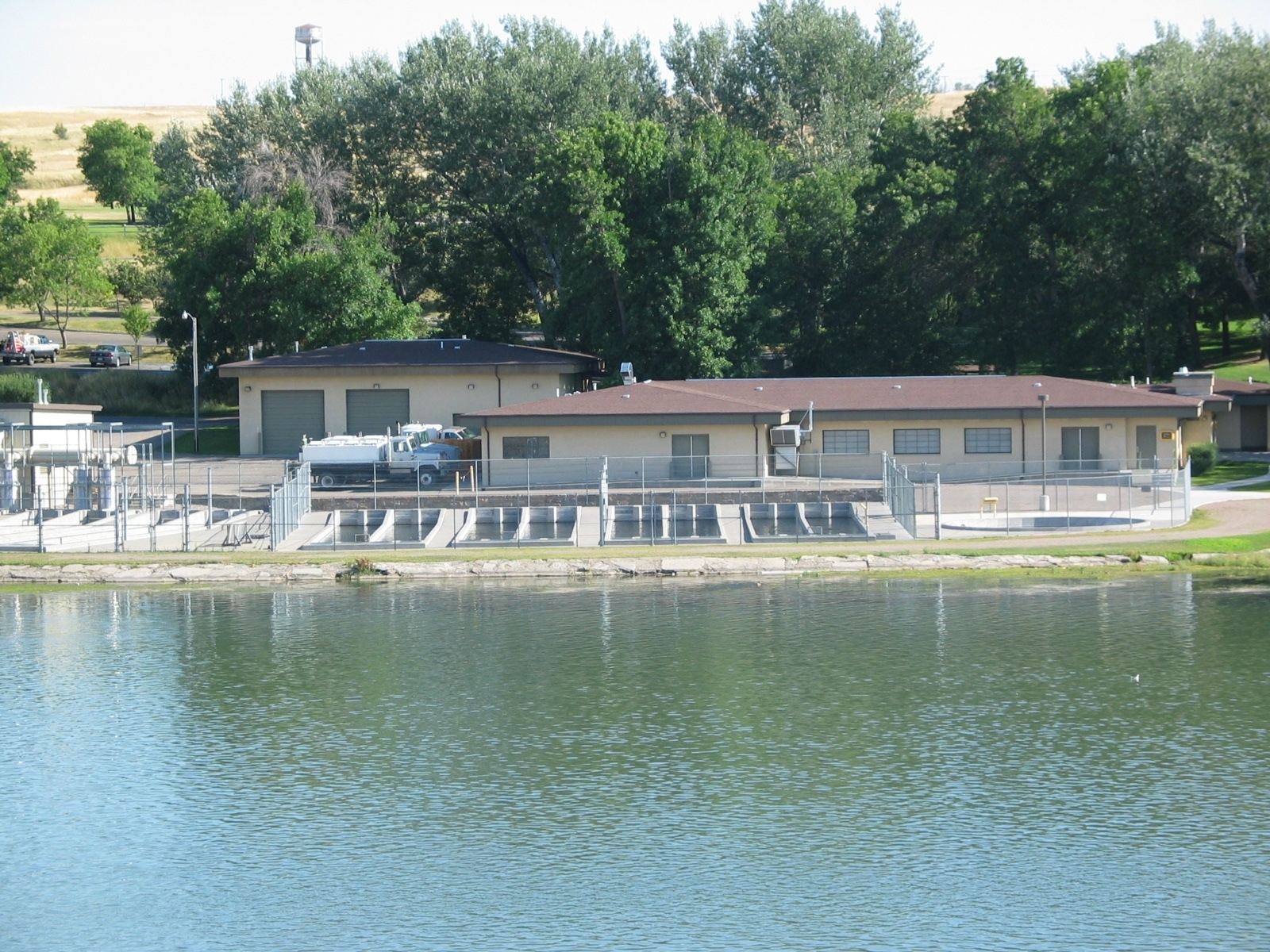 Giant Springs, the hatchery's water supply, is one of the largest springs in the country, and is the headwaters of one of the world's shortest rivers, the Roe River. The springs put forth over 150 million gallons of water each day, flowing into the Roe River which is only 201' in length. Water to the hatchery building is 650-700 gallons per minute. The outside 24 raceways receive 15,000 gallons of water per minute. The water is high in nitrogen and low in oxygen because it is from a very deep aquifer. As a result, the water from the spring is pumped through packed columns to reverse this condition and provide better quality water for fish rearing.